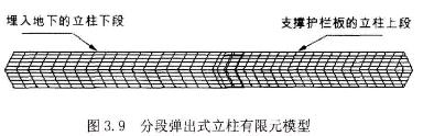 第二類護欄的立柱模型其橫截面是個矩形框,幾何尺寸如圖3. 8所示,括號內(nèi)的是上段立柱的尺寸括號外的是下段立柱的尺寸。有限元模型如圖3.9所示。立柱分為上、下兩段.下面的一段埋在地下作為立柱的攀礎(chǔ)部分,上面的一段極入9TIMA中,對a形護攔板ig支撐作用,這M不的護e-立ttTF%1Ff的材MIA型都相同。
