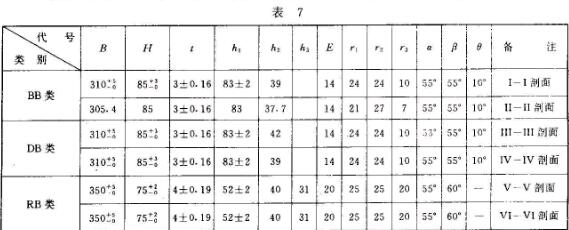 波形梁板的外形見圖I-圖其橫截面公稱尺寸及允許偏差應(yīng)符合表7的規(guī)定。